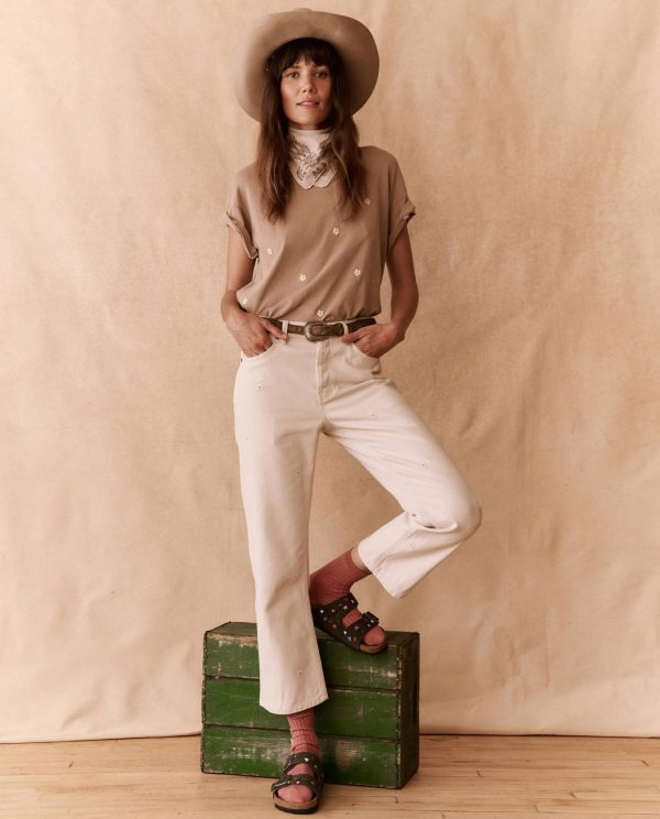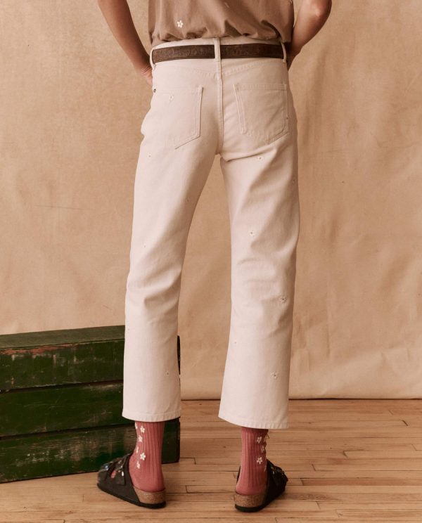 The Embroidered Daisy Wayne Jean. is our favorite slouchy denim body. Inspired by—and named for—Emily’s father, who has been a pillar of the brand’s nostalgic roots, this is a beloved fit that gets better with age…just like its namesake. This jean fits easy through the leg, is cropped to the perfect length with a clean hem, and washed and worn to get the hand feel we love. Handcrafted locally in Los Angeles, with a special embroidered daisy technique, our process ensures beauty and uniqueness—no two pieces are alike. Wear The Wayne Jean true to size at the natural waist or size up to wear them oversized and slung low, like borrowing his favorite pair.