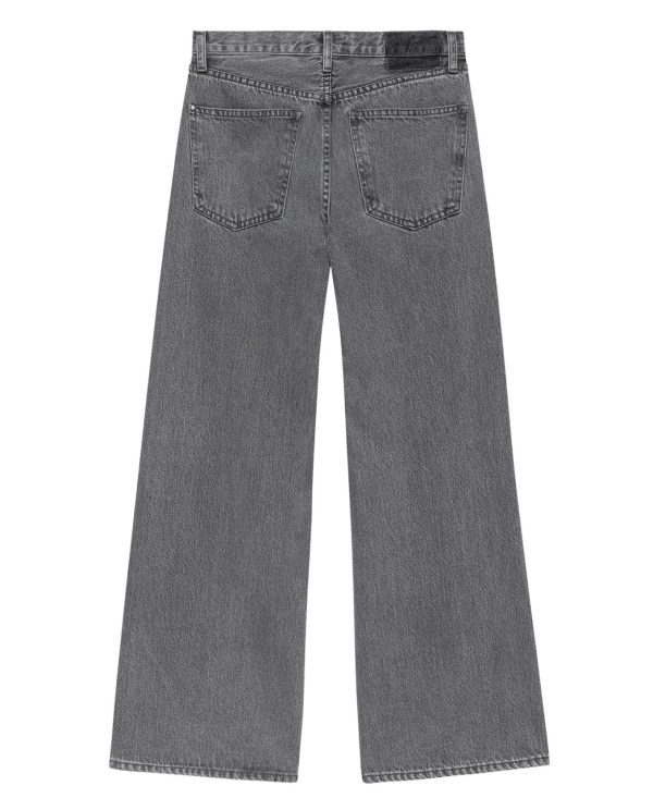 The Slouch Wide Leg Jean sits low on the hips with a long inseam and a wide, easy leg. Classic five-pocket construction includes scoop pockets, back patch pockets, a metal shank button, zip fly, and metal rivets. Designed to feel lived-in from the first wear.