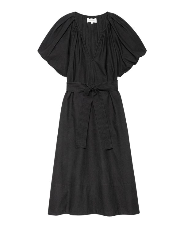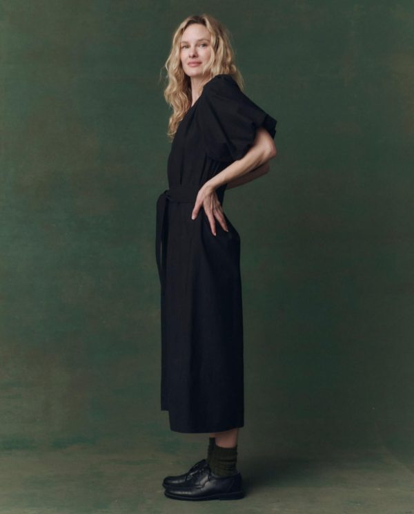 An easy pullover silhouette, The Fairground Dress has a scooped neckline with a deep slit, puffed sleeves lined for structure, and a hem that falls just below the calf. A separate belt lets you define the waist,or leave it relaxed.