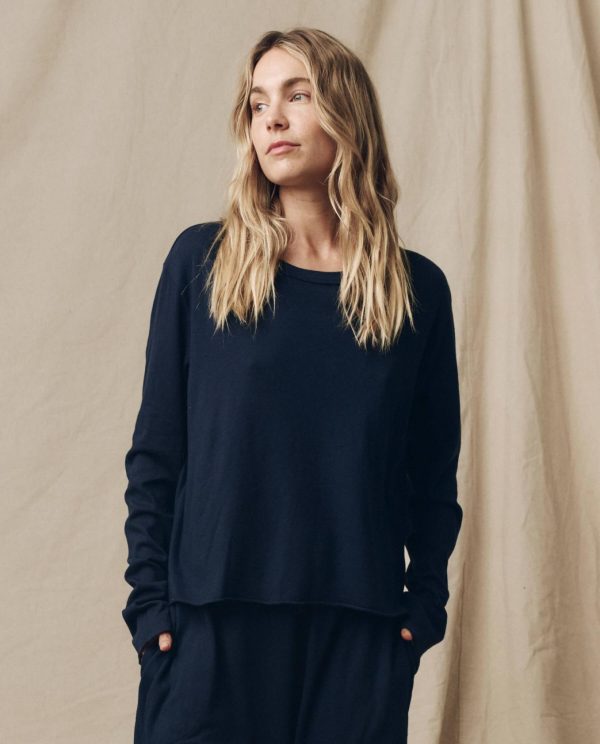 Our cherished square cropped tee updated with longer, slim arms that are perfect for layering under everything. This tee is boxier with shorter proportions and a signature raw hem and cuffs. Handcrafted locally in Los Angeles, our process ensures beauty and uniqueness—no two pieces are alike.