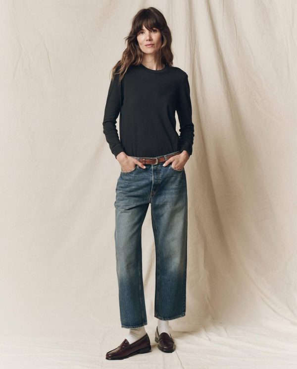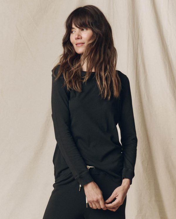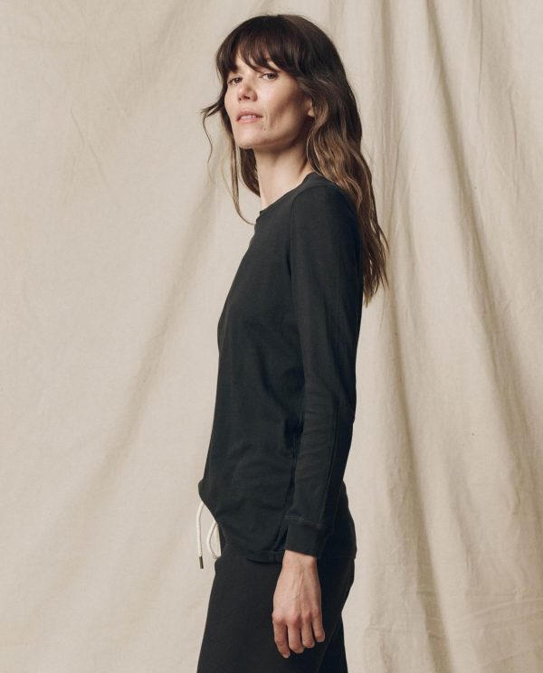 Women The Great. Long Sleeve Tees | The Long Sleeve Slim Tee. Almost Black