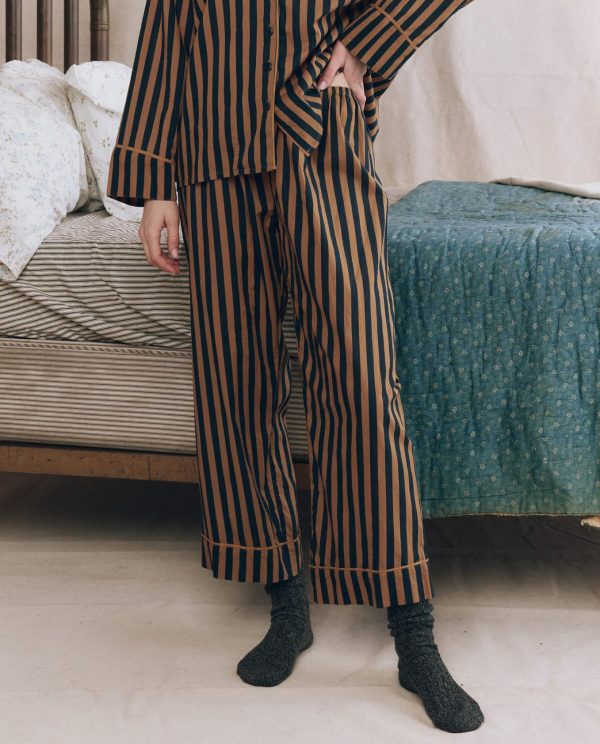 This sleep pant is crafted from the softest 100% cotton in the Club Stripe. It features a wide leg, slightly dropped rise, an elastic high waist and piped cuff. Wear them with its matching sleep top for mornings at home.