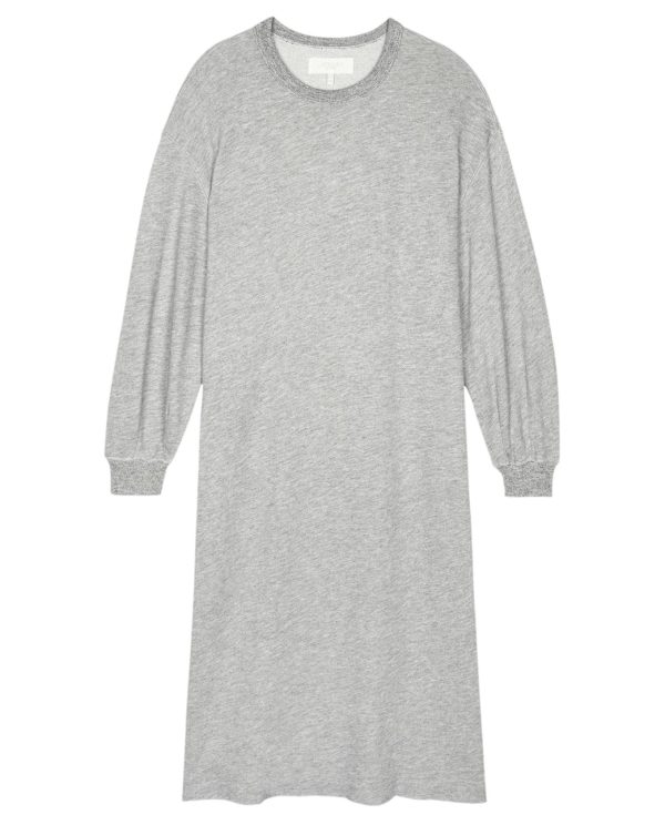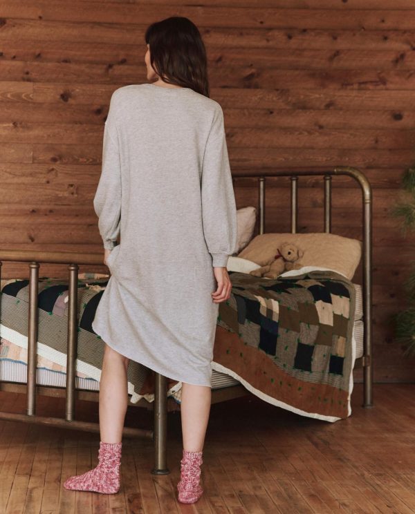 This sweatshirt dress is cut in our tried-and-true French Terry fabric and hits just below the knee.