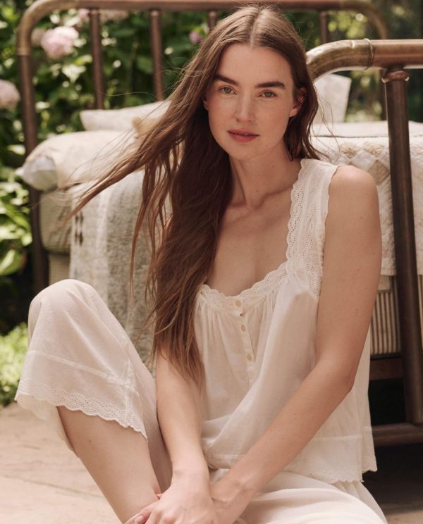 Women The Great. Sleep Tops | The Eyelet Tank. True White