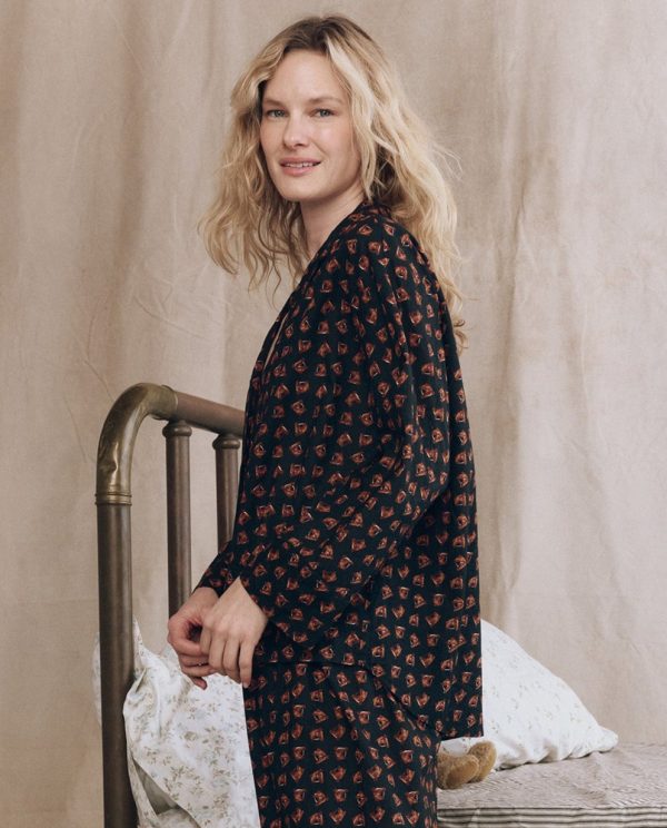 Made for cozy moments at home, The Pajama Shirt references men’s vintage pajama tops that we’ve always loved to borrow. Roomy and drapey, it features an open neckline, button front, and nostalgic sleepwear details. Made from printed cotton in our Medallion Print and trimmed with piping, it pairs perfectly back to The Easy Sleep Pant for a coordinated set.