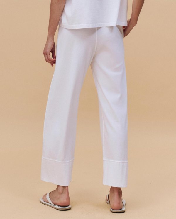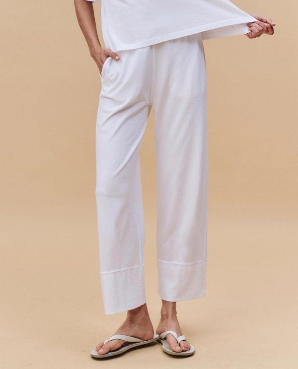 From our tightly edited seasonal capsule, The Jersey Win Pant. channels vintage athletic ease in a clean, elevated silhouette. Crafted from structured heavyweight jersey it features a wide elastic waistband, a relaxed pull-on fit, and a straight leg that finishes in a playful tall cuff. Designed to feel nostalgic yet fresh—this is loungewear that leaves the house. Made in Los Angeles
