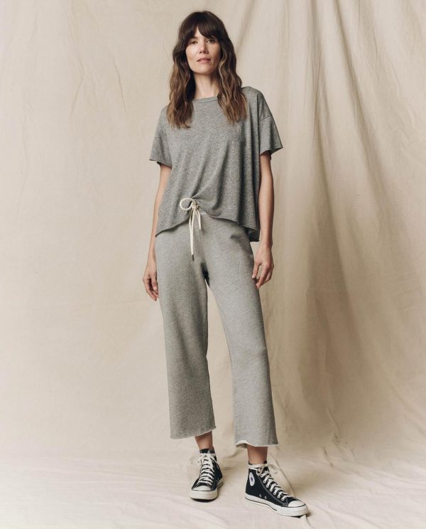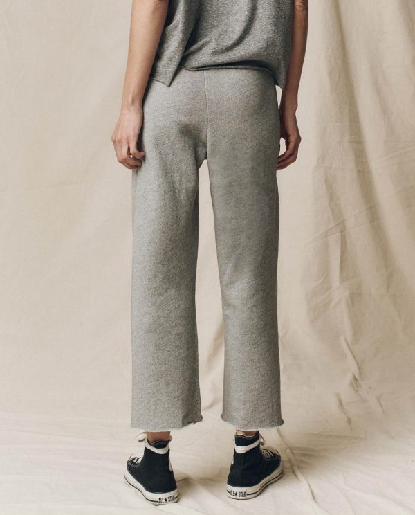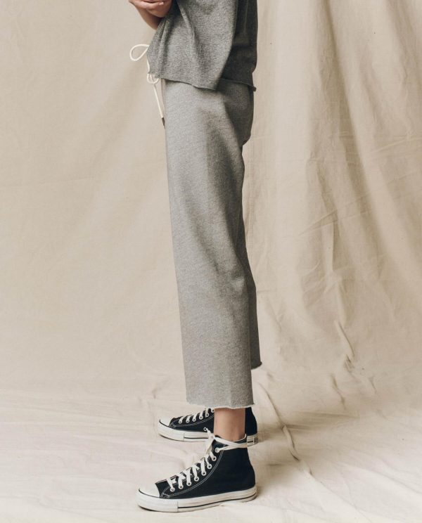 This sweatpant has the most perfect wide, cropped leg- featuring a raw cut hem for a naturally slouchy and easy fit. The drawstring waist replaces traditional elastic for a more customizable look. Made from a washed cotton terry with a vintage feel and the softest hand. Pair back to your favorite tees and sweatshirts. Handcrafted locally in Los Angeles, our process ensures beauty and uniqueness—no two pieces are alike.