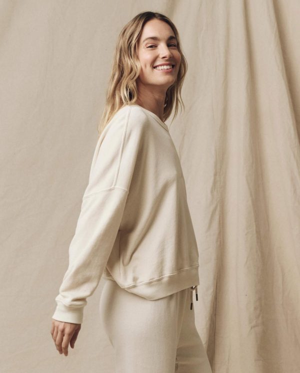 A relaxed fit with a dropped shoulder, cropped body length and clean cuffs with no distressing make this piece feel like the perfect deadstock sweatshirt flea market find. Authentic vintage details like a half moon in the back collar add extra character. Handcrafted locally in Los Angeles, our process ensures beauty and uniqueness—no two pieces are alike.