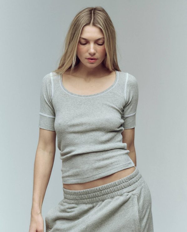Women The Great. Tees | The Baby Rib Ballet Tee. Heather Grey